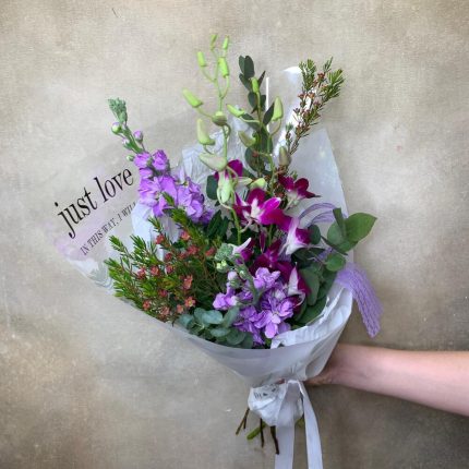 Букет из альстромерии с космическими орхидеями. Букет 253 ALMOND ROSES