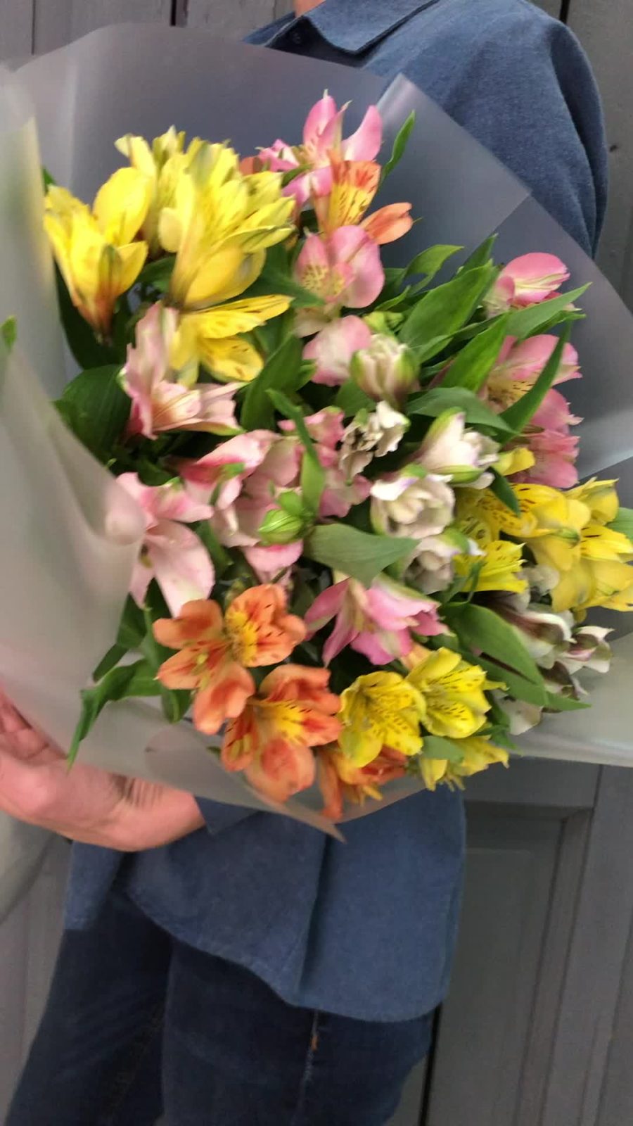 Альстромерия – 11 шт.Упаковка дизайнерская – 2 шт.Лента атласная – 1 шт.