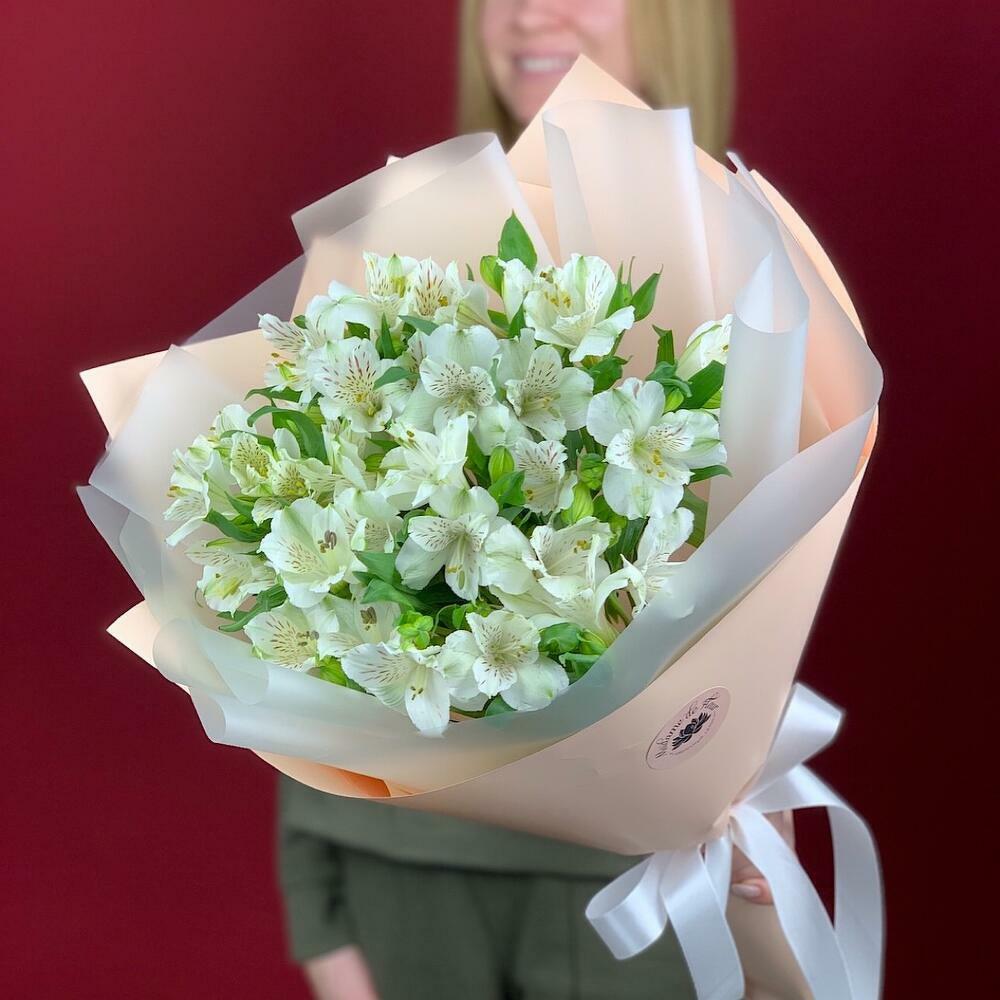 Нежный букет из альстромерии с нежном оформлении