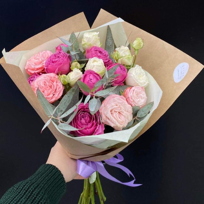Гвоздики, Кустовые розы, Лизиантусы, Пионовидные розы, Розы