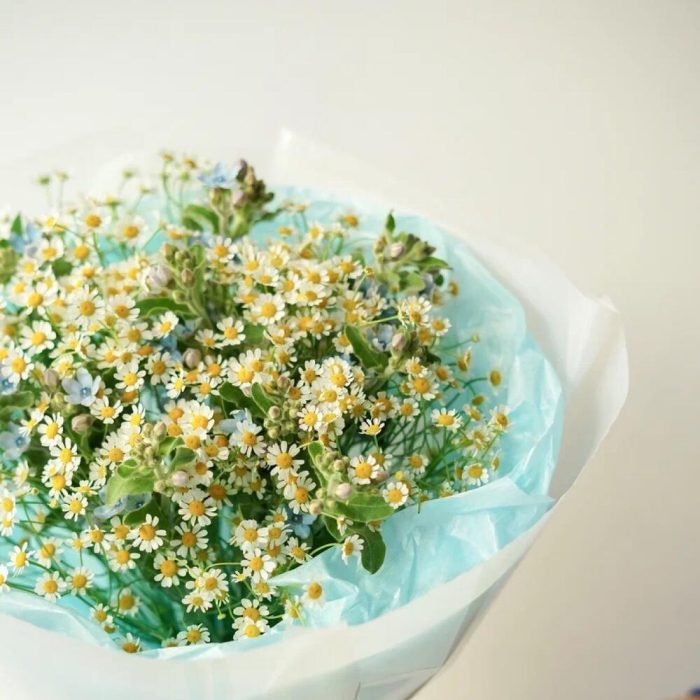 Привет, ромашки! Этот букет – настоящее воплощение летнего настроения и свежести. Яркие желтые цветы ромашек гармонично сочетаются с изящными голубыми оксипеталумами. Будьте уверены, что этот букет станет прекрасным подарком для любого случая: от дня рождения до простых … Показать ещёзнаков внимания. Порадуйте своих близких яркими красками