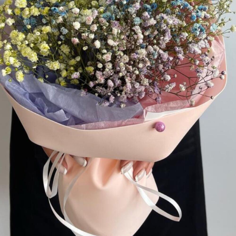 Лента атласная – 2 шт.Тишью – 2 шт.Фоамиран – 1 шт.гипсофила радужная – 3 шт.