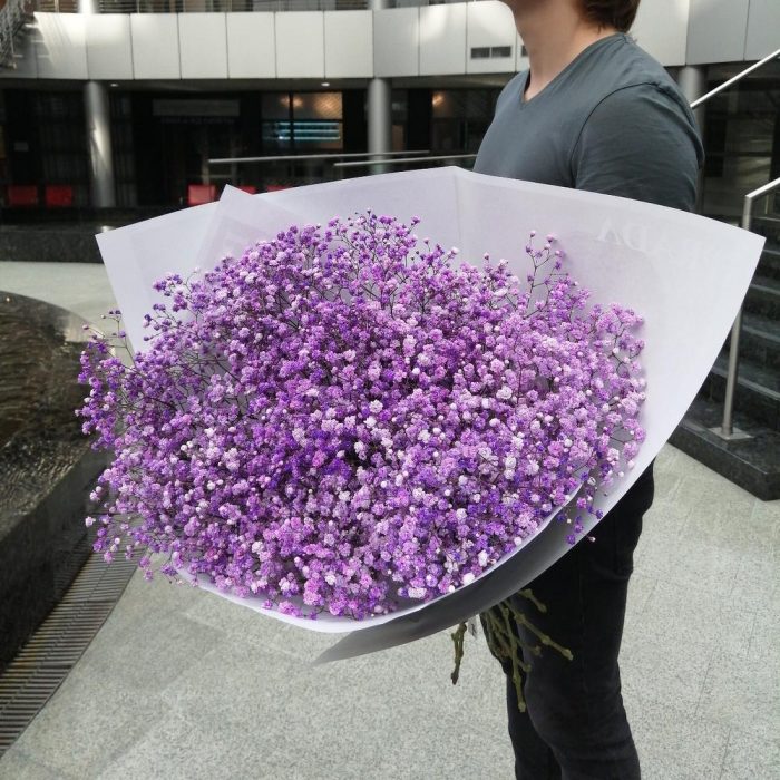 Гипсофила Мирабелла 95 г – 9 шт.Упаковка дизайнерская – 2 шт.Лента атласная – 2 шт.