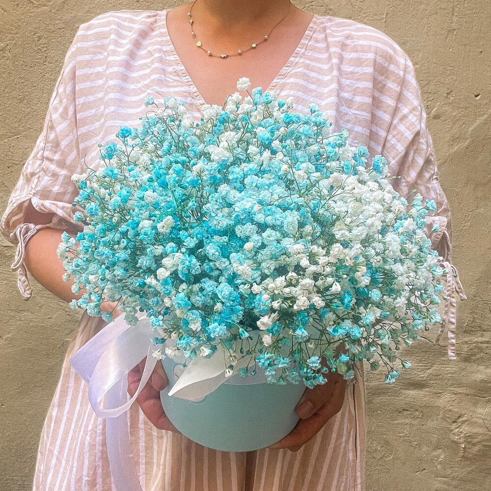 Морская волна, гипсофила в шляпной коробке