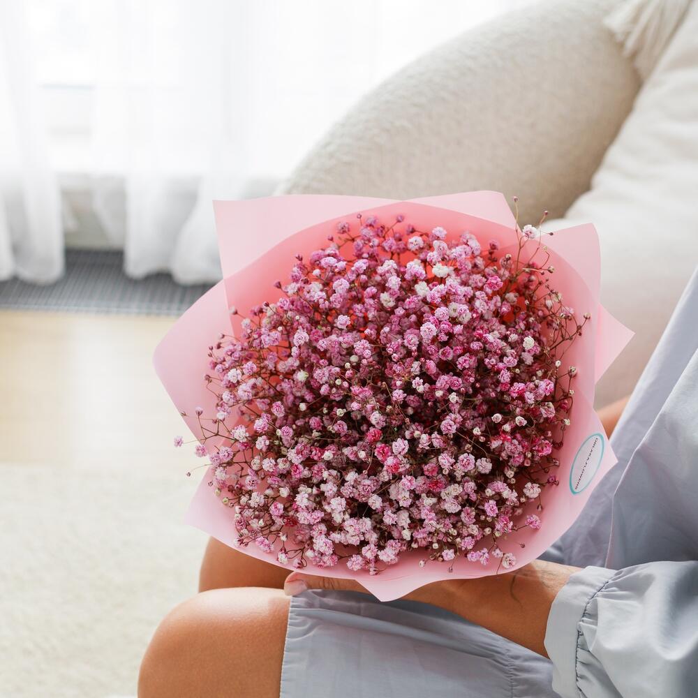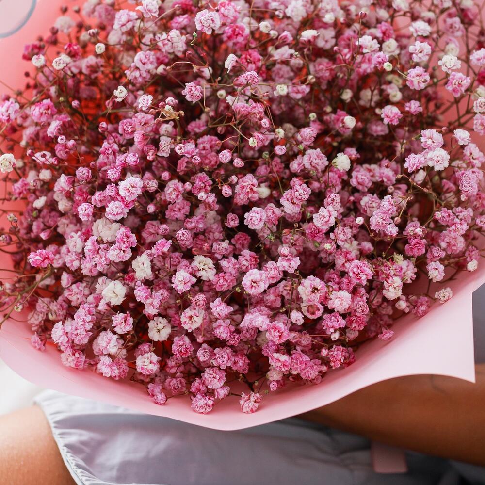 Розовый букет из гипсофилы