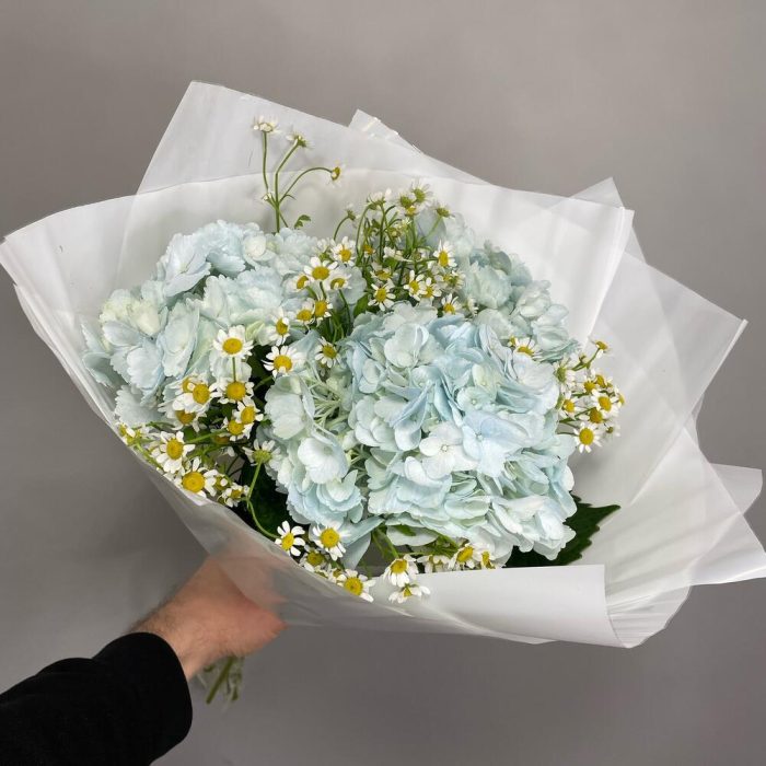 Гортензия – 3 шт.Танацетум – 7 шт.Упаковка дизайнерская – 3 шт.