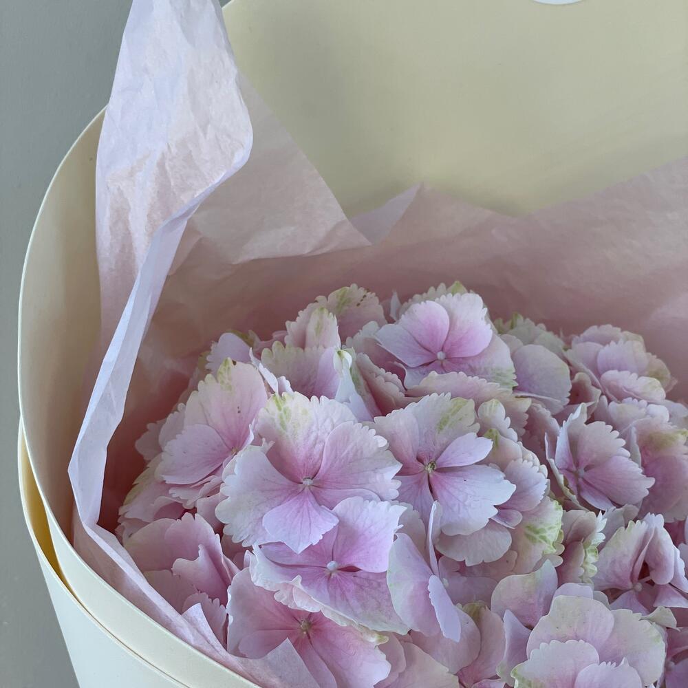 “Сиреневый туман” – композиция из гипсофилы в шляпной коробке