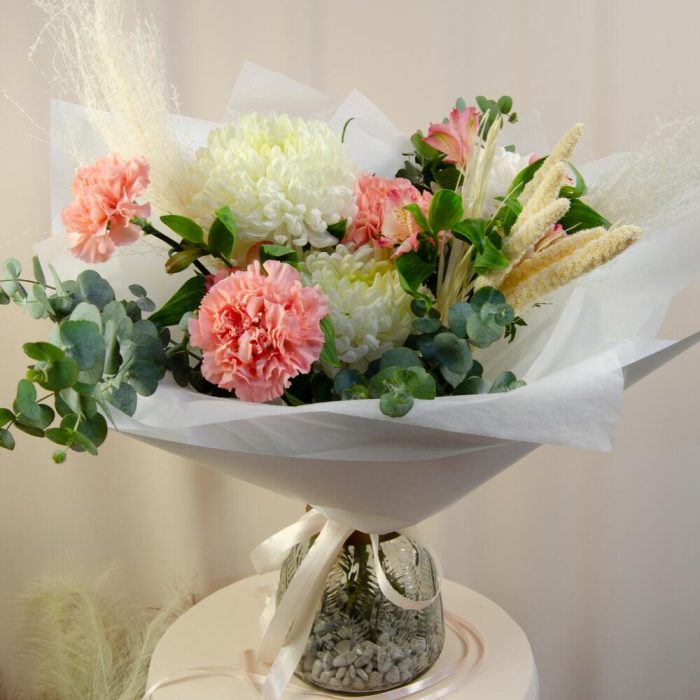 Гвоздики, Кустовые розы, Пионовидные розы, Розы