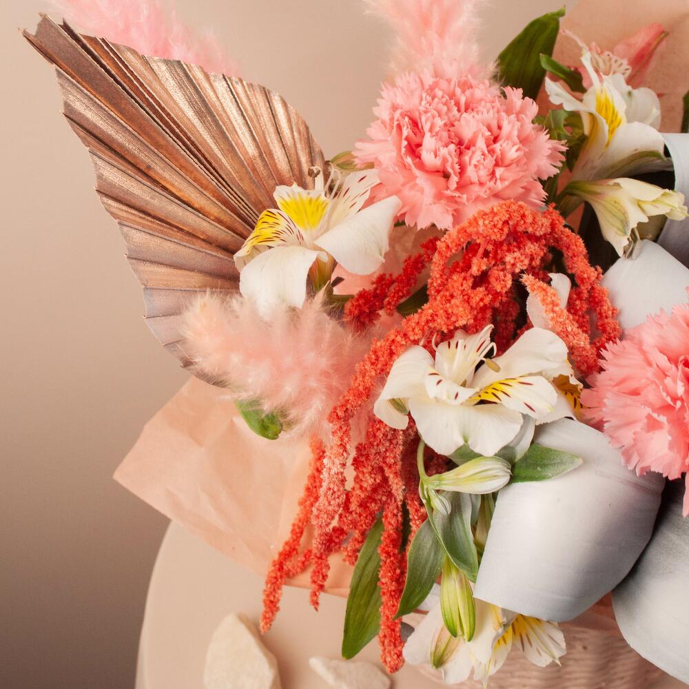 15 диантусов, лимониум и пальма