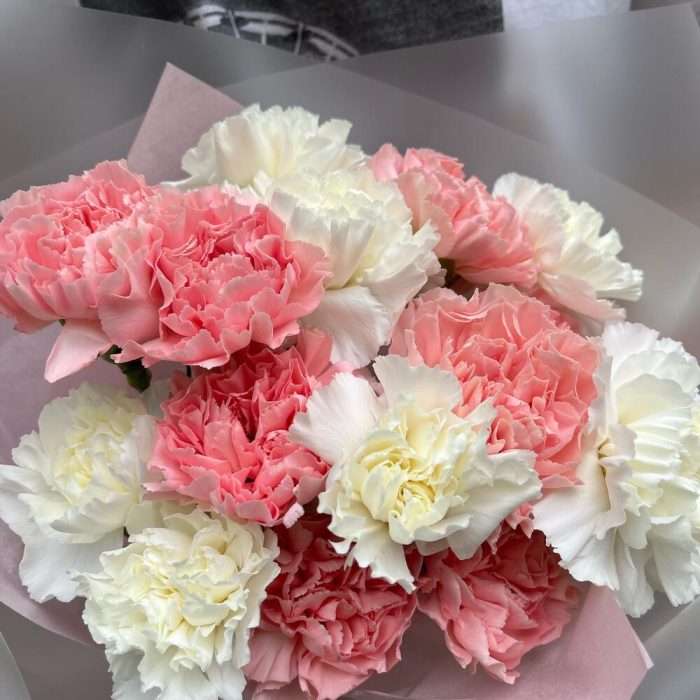 Монобукет с розовыми и белыми диантусами