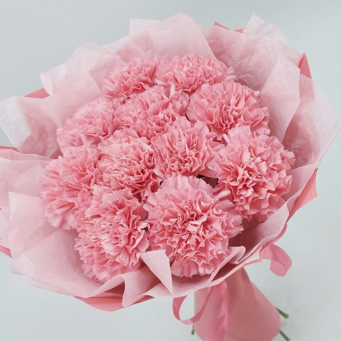 Стойкие, ажурные розовые диантусы в стильном монобукете. Такой букет всегда уместен и подойдёт для любого повода: День Рождения, именины, годовщина свадьбы, рождение ребенка, 8 марта, День Святого Валентина, выпускной и т.д. Можно вручить маме, сестре, подруге, коллеге, учителю, любимой.