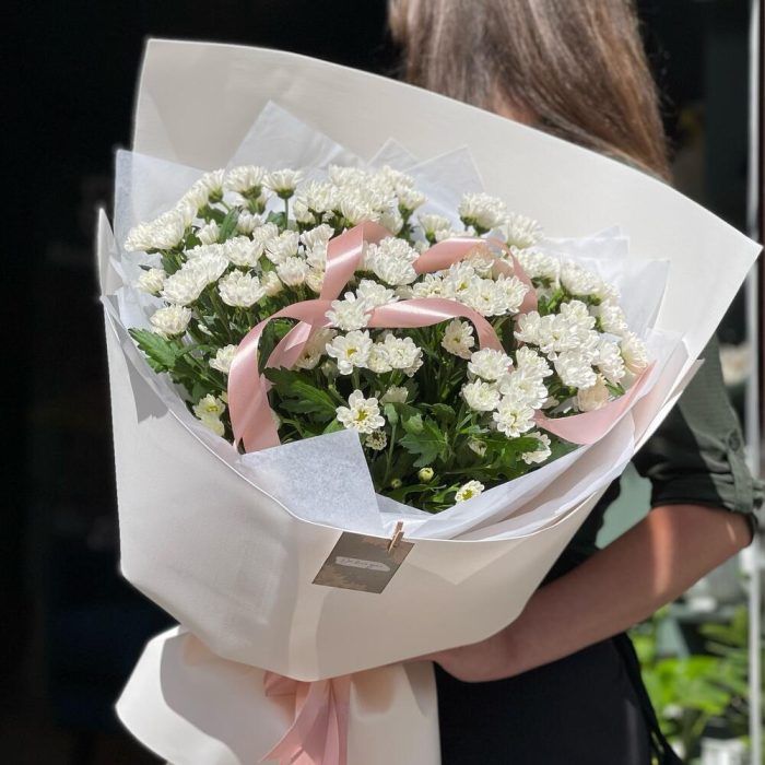 Хризантема Сантини – 15 шт.Упаковка – 1 шт.Лента атласная – 3 шт.