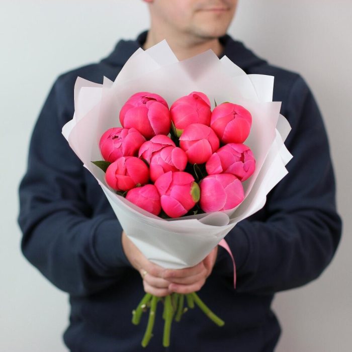 Лента атласная – 1 шт.Упаковка дизайнерская – 4 шт.Пион коралл шарм – 11 шт.