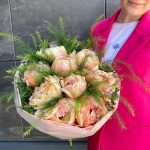 Букет из 15 пионов с хамелациумом