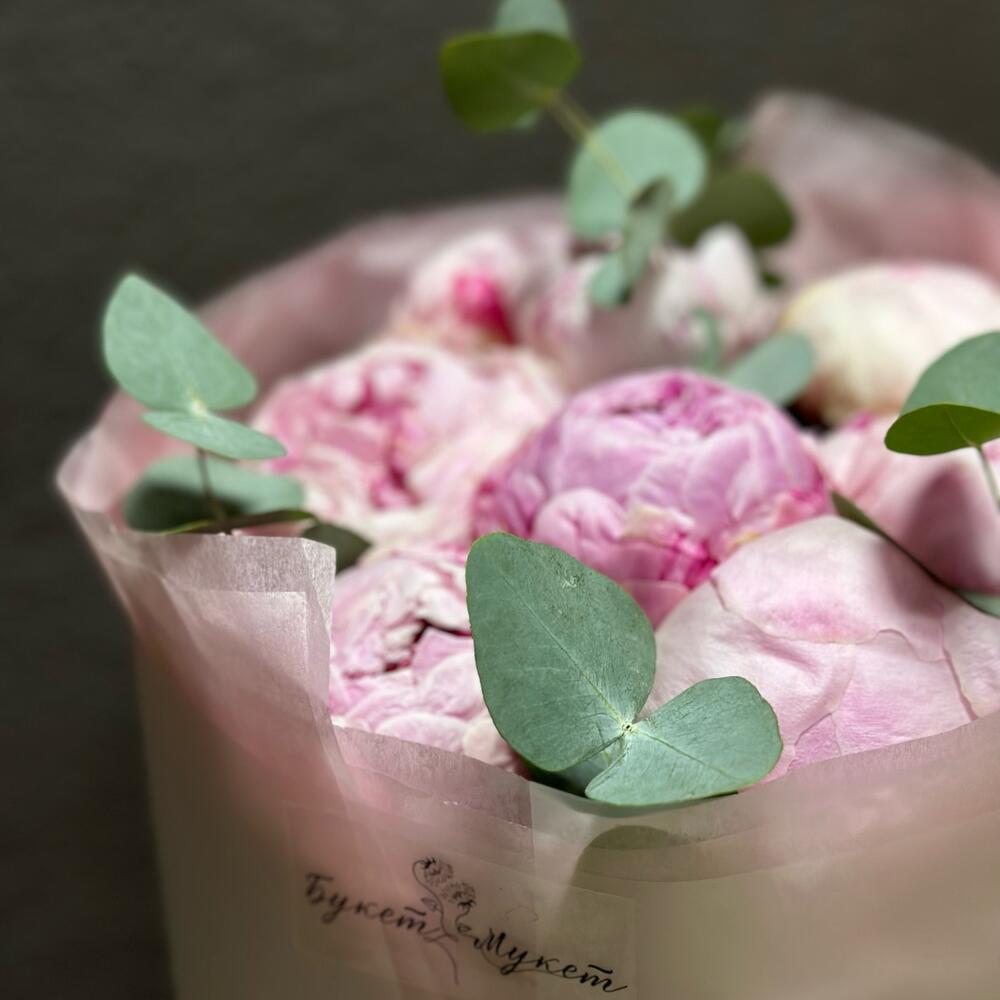 Букет из розовых пионов «Весенние пионы»(пионы,эвкалипт )