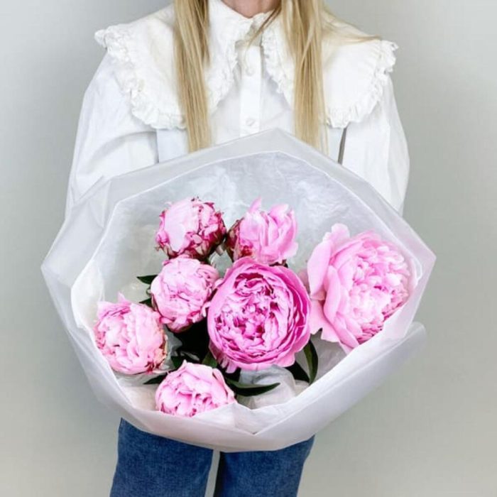 Букет с розовыми пионами Premium 7 шт