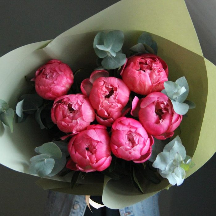 Коралловые пионы и эвкалипт