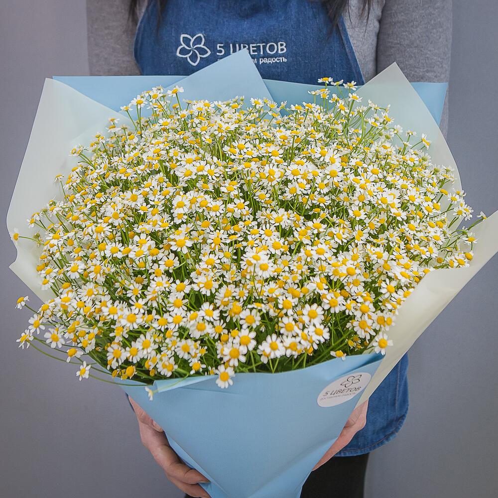 ромашки – 101 шт.дизайнерская упаковка и атласная лента – 1 шт.