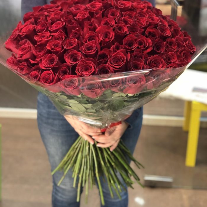 101 красная роза 50 см в букете