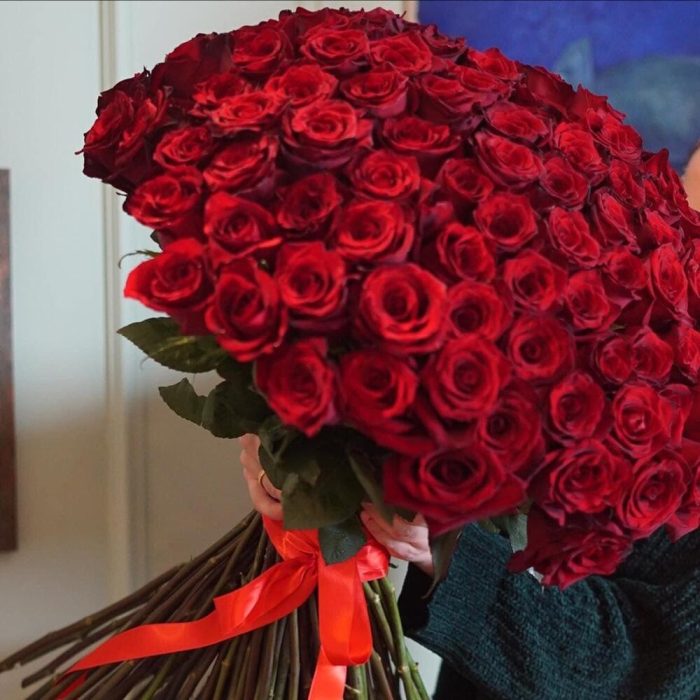 Красная роза – 101 шт. Открыточка с вашими пожеланиями – 1 шт.