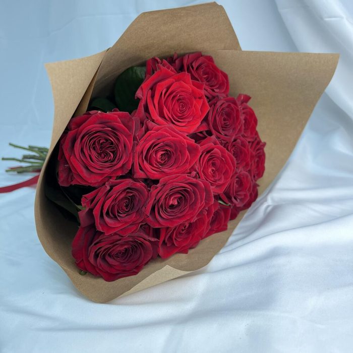 роза red naomi 50 см – 15 шт.Крафт упаковка – 1 шт.атласная лента (красная) – 1 шт.