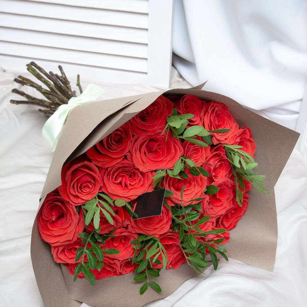 роза nina 60 см – 25 шт.Фисташка – 5 шт.Крафт – 1 шт.Лента атласная – 1 шт.
