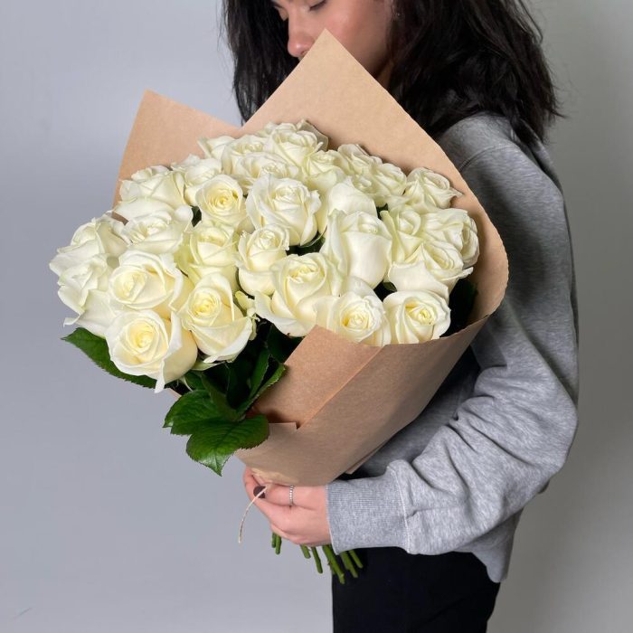 31 белая роза в крафте