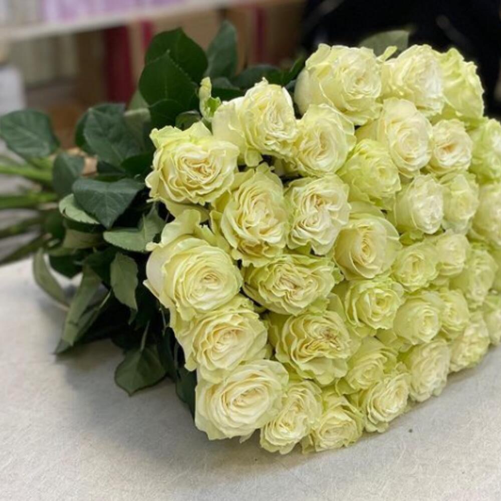 Белые розы – это чистота, любовь и надежда. Не зря белая роза считается символом Девы Марии в христианской религии. Такой букет лучше всяких слов скажет о ваших чувствах. Невинном и чистом. Букет из 35 белых роз Аваланш будет эффектным подарком для девушки. Все восхищаются чистой и красотой белых роз. У роз Аваланш достаточно большой бутон с оттенком зеленого цвета у стебля. Идете на первое свидание? Обязательно купите букет из 35 роз Аваланш. Она по достоинству оценит такой подарок.