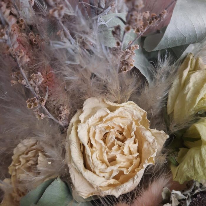 Целозия – 3 шт.Эвкалипт – 3 шт.Роза – 3 шт.Подсолнух – 4 шт.Лагурус – 7 шт.Дизайнерская упаковка – 1 шт.кортадерия – 1 шт.