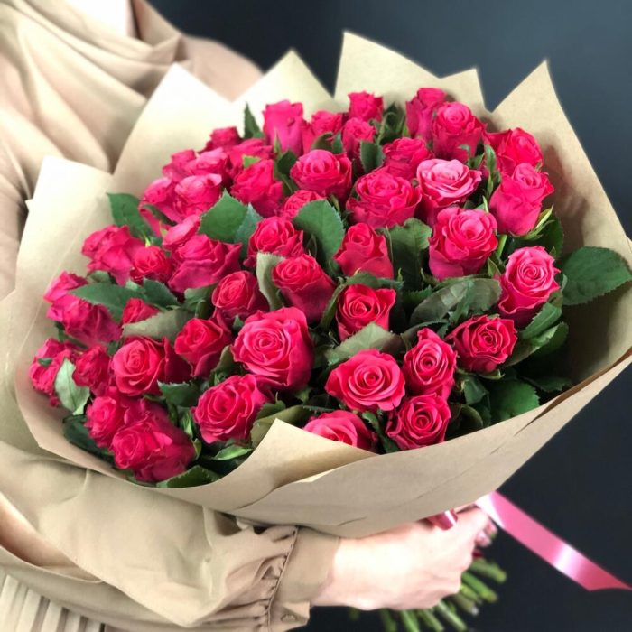 Роза – 51 шт.Крафт упаковка – 3 шт.
