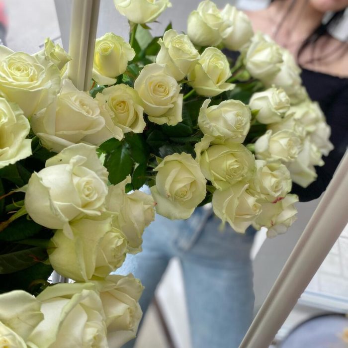 Лента атласная – 2 шт.розы белые 60 см – 25 шт.