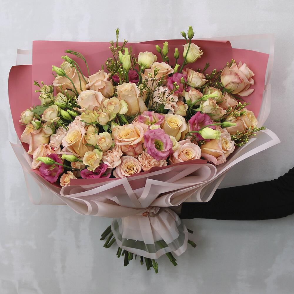 Категории: Гвоздики, Лизиантусы, Розы