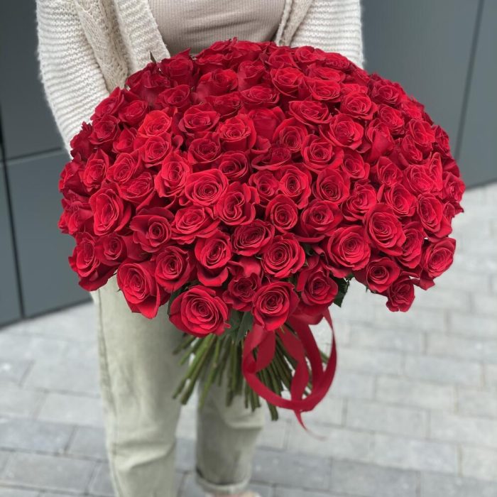 Метки: 101 роза, 14 февраля, Красные розы, от 5000 руб, Роза 50 см