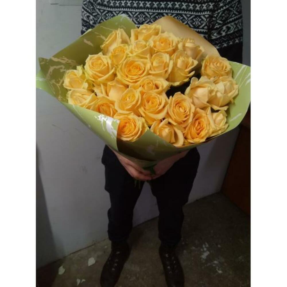 Букет из 25 роз, Пич Аваланш, кремовый длиной 60 см, производства Россия