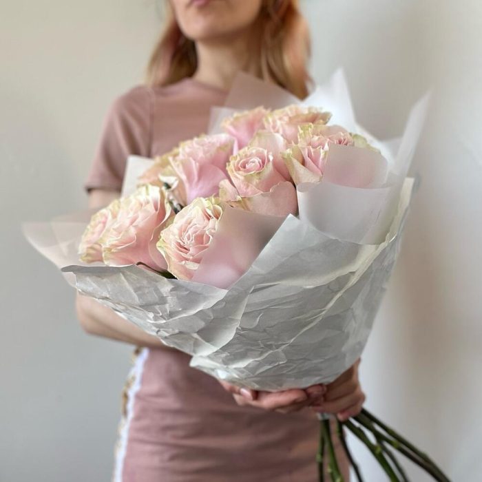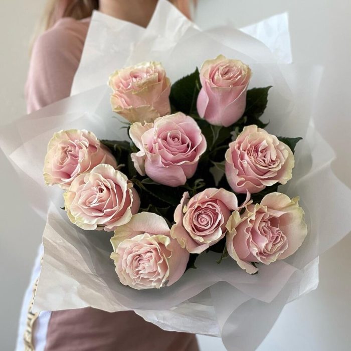 Букет из нежно-розовых роз Пинк Мондиаль 9шт
