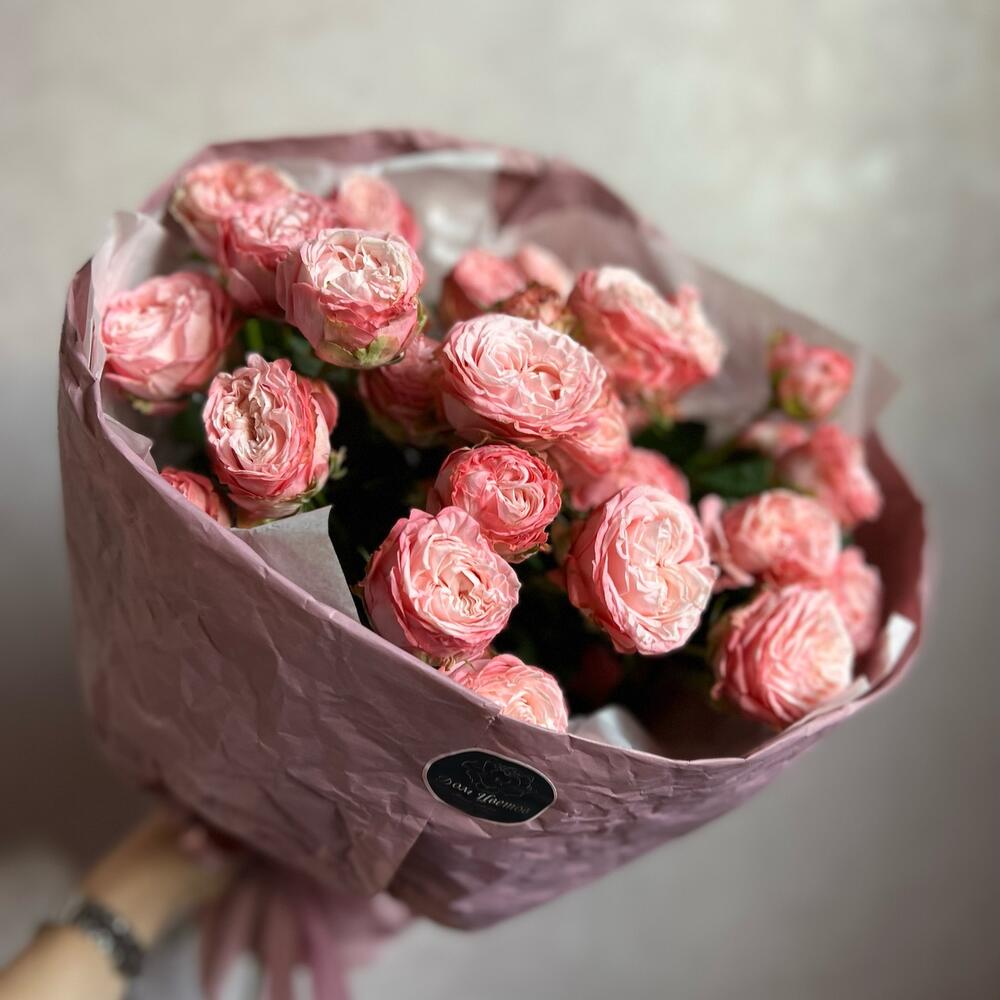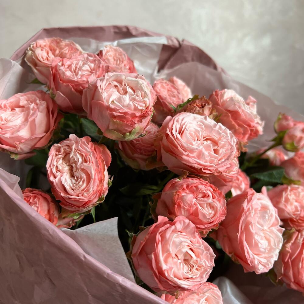 Кустовая пионовидная роза – 5 шт.декоративная упаковка – 1 шт.Атласная лента – 1 шт.