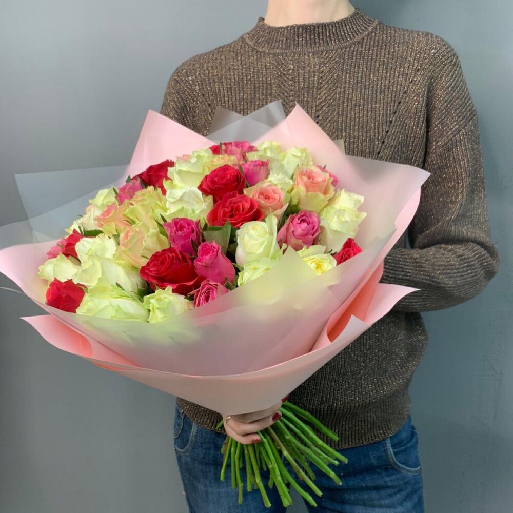 роза кения 40 см – 51 шт.Упаковка дизайнерская – 2 шт.Лента – 1 шт.