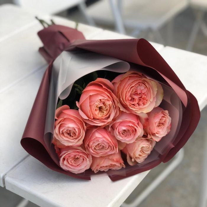 Пленка матовая – 4 шт. Пионовидная роза персиковая – 9 шт.