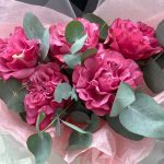 Букет из розы пионовидной и эвкалипта