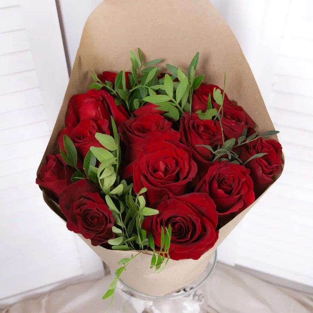 Букет "Roses aux verts red premium"