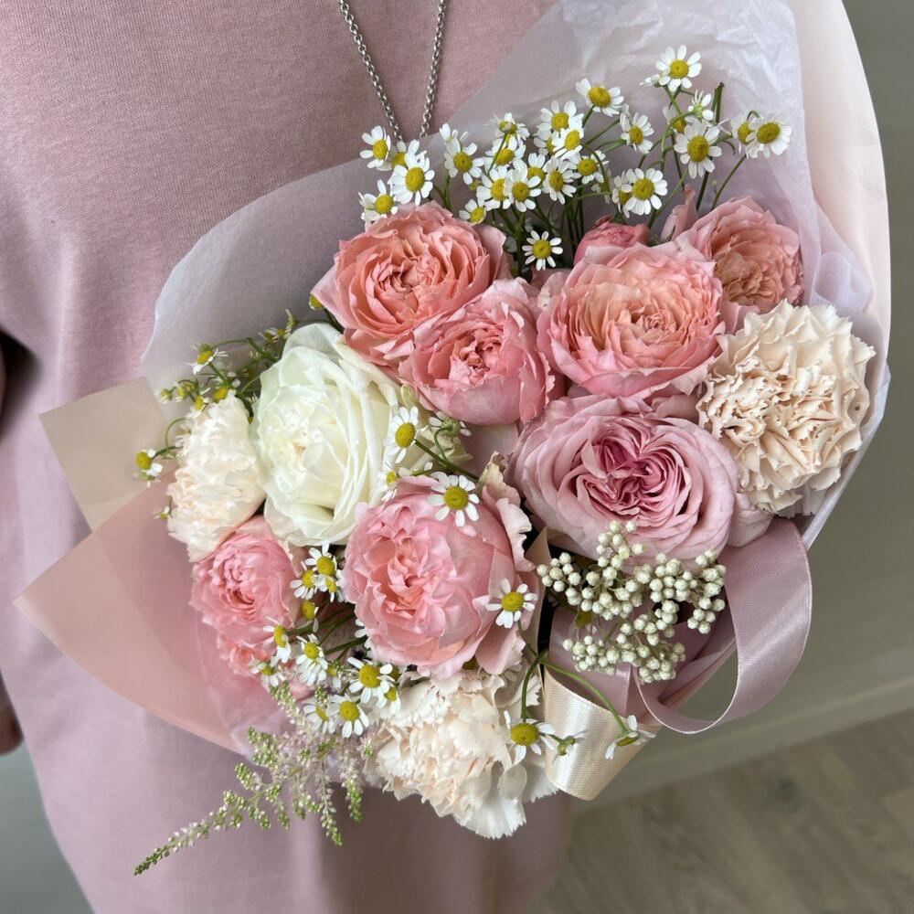 Категории: Гвоздики, Пионовидные розы, Розы, Ромашки