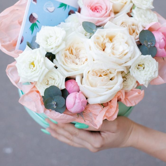 “В твоих глазах”: нежная шляпная коробка с французскими розами