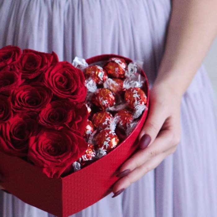 Коробка из 9 роз с конфетами