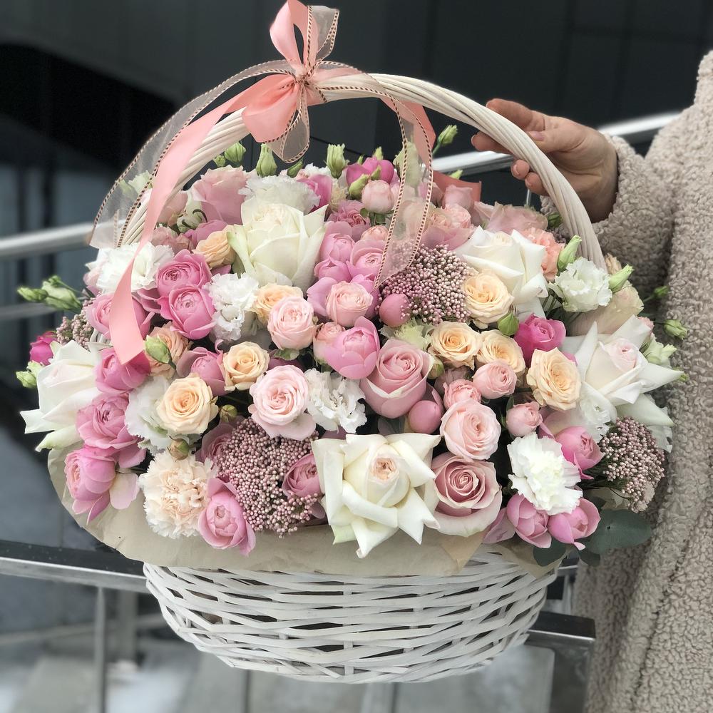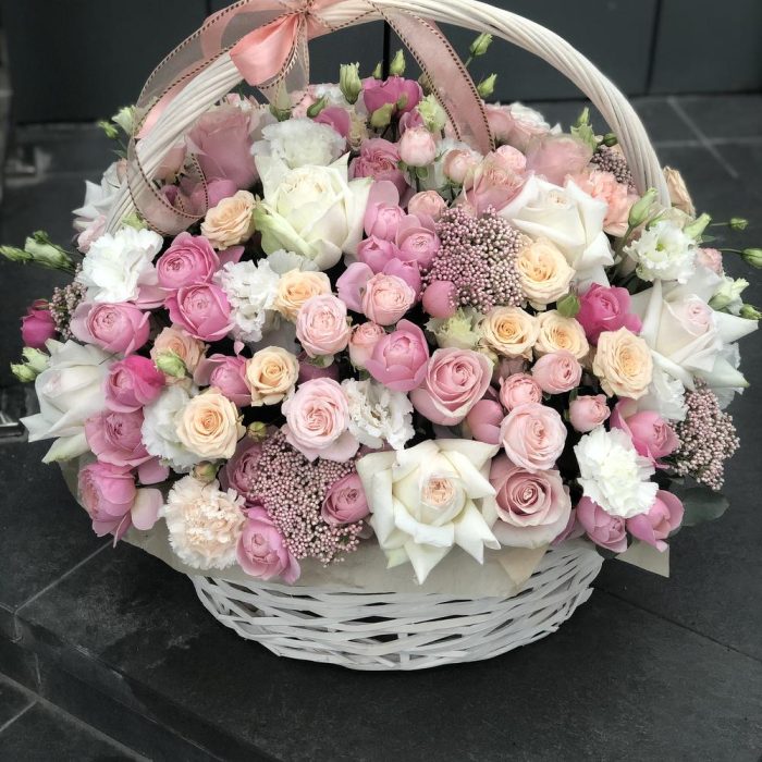 Альстромерии, Гвоздики, Кустовые розы, Лизиантусы, Розы, Хризантемы