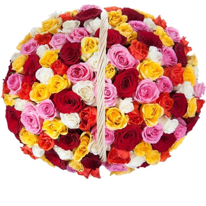 Роза кенийская микс – 101 шт.Корзина – 1 шт.Оазис – 2 шт.
