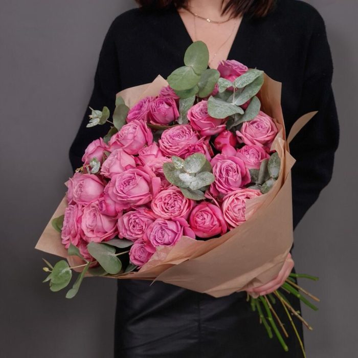 Кустовые розы Артезия с эвкалиптом