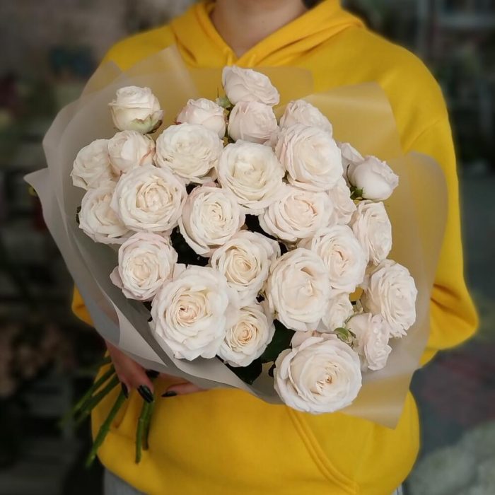 Кустовые розы нежно персиковые/белые