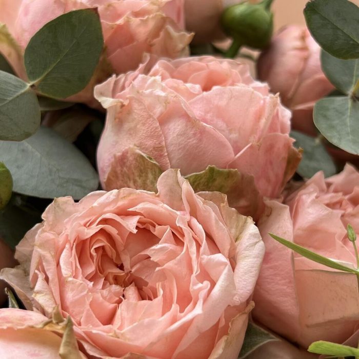Гвоздики, Кустовые розы, Лизиантусы, Пионовидные розы, Розы