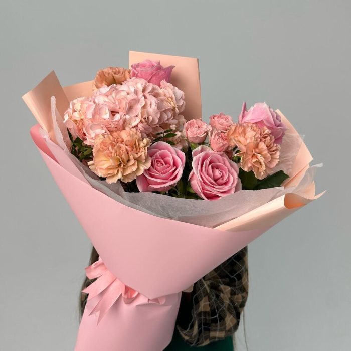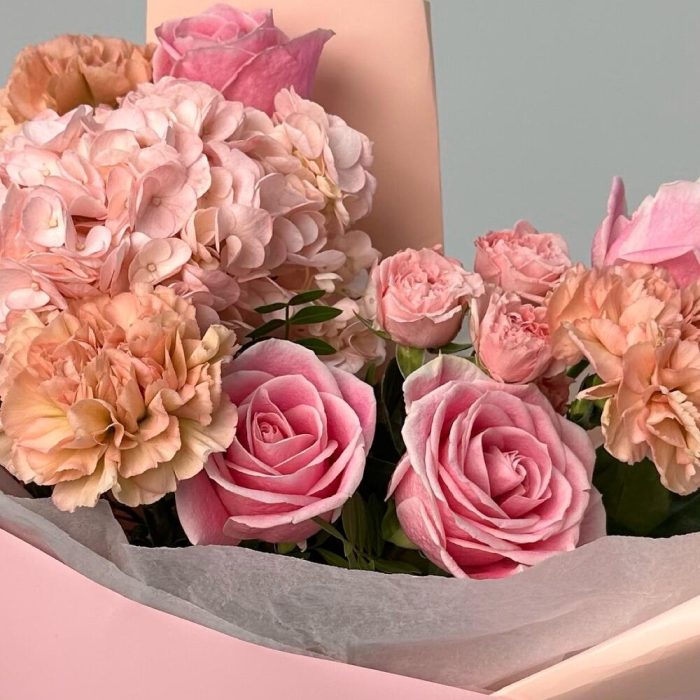 Гвоздики, Кустовые розы, Лизиантусы, Пионовидные розы, Розы