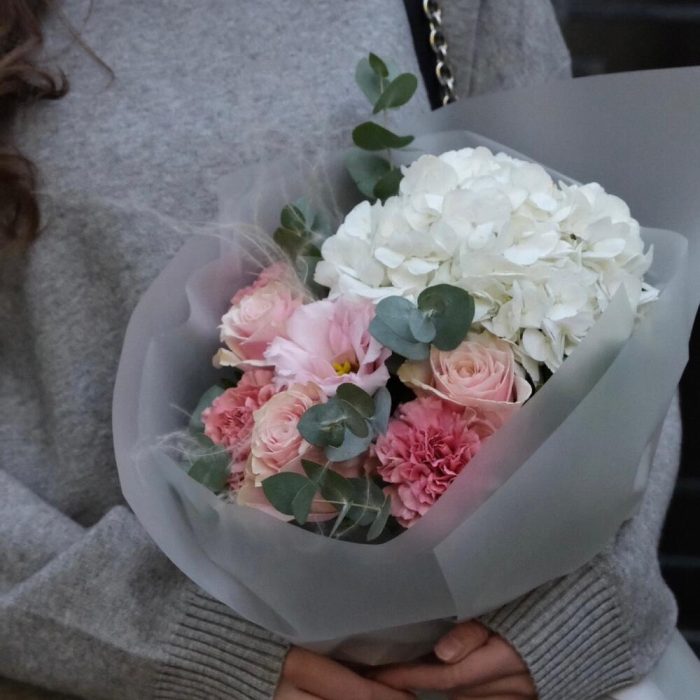 “Эвкалиптическая роскошь” гортензия и пионовидная кустовая роза